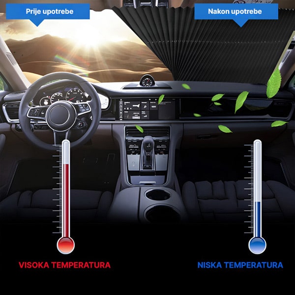Parkirani automobil na izravnom suncu doseže preko 70°C unutra – prži vam volan, iskrivljuje instrumentnu ploču i uništava svaku vožnju i prije nego što započne. GLADESHADE blokira UV zrake na izvoru, održavajući unutrašnjost dramatično hladnijom i štiteći sjedala i obloge od dugoročnih oštećenja od sunca.